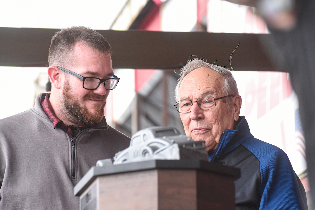 Among Reutimann’s long list of accomplishments, an unexpected honor was bestowed upon him in October when Super DIRT Week unveiled the Emil Lloyd “Buzzie” Reutimann perpetual trophy. Reutimann won the first two editions of the marquee Big Block Modified race in 1972 and 1973, and a silver casting of the Modified he won with in 1972 will forever remain atop the new trophy.